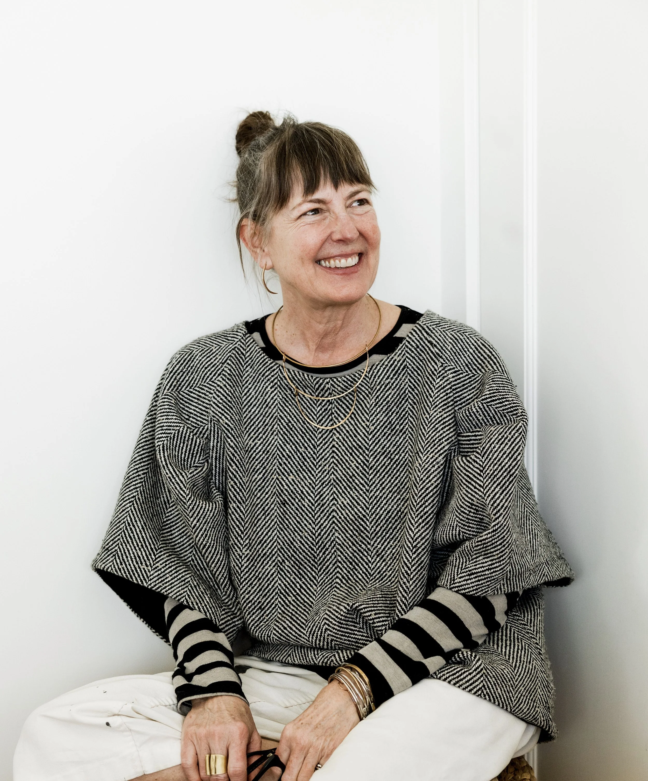 For more than two decades, Shelli has been “drawing with wire,” bending and shaping line in ways that explore shadow, rhythm, and perspective. Her wire sculptures capture the essence of form with a simplicity that feels both playful and profound. Her jewelry practice echoes this same fascination with line. Working in silver, brass, and copper, she creates wearable works of art that extend her sculptural language into everyday life. Each piece is a study in balance and clarity, designed to be both elegant and enduring.